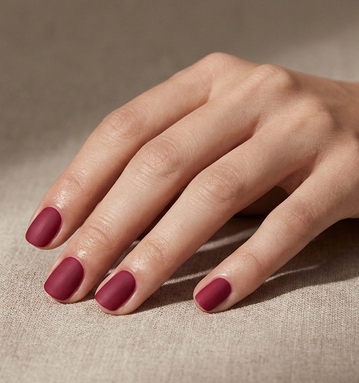 Matte red feels like a backstage secret — quiet, controlled, and impossibly chic.